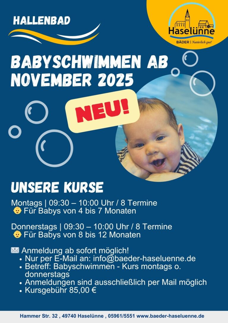 👉 Anmeldung möglich unter: https://www.baeder-haseluenne.de/anmeldung-schwimmkurs/