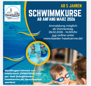 👉 Anmeldung möglich unter: https://www.baeder-haseluenne.de/anmeldung-schwimmkurs/